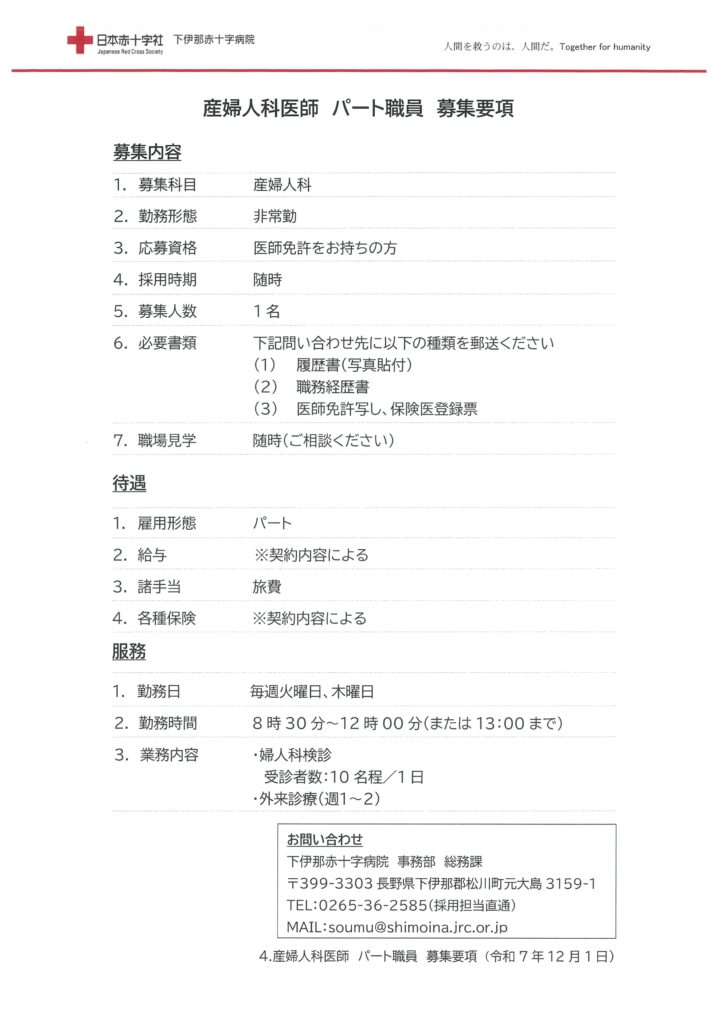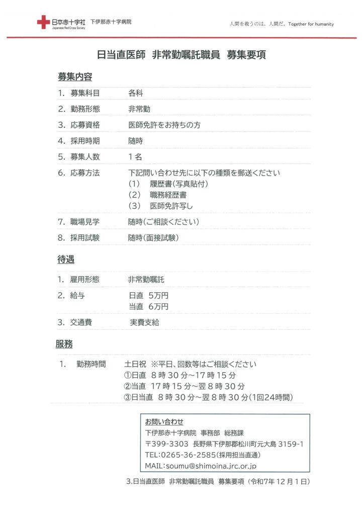 当院は宿日直の許可を取得しております。また、医師の時間外労働時間はA水準になります。