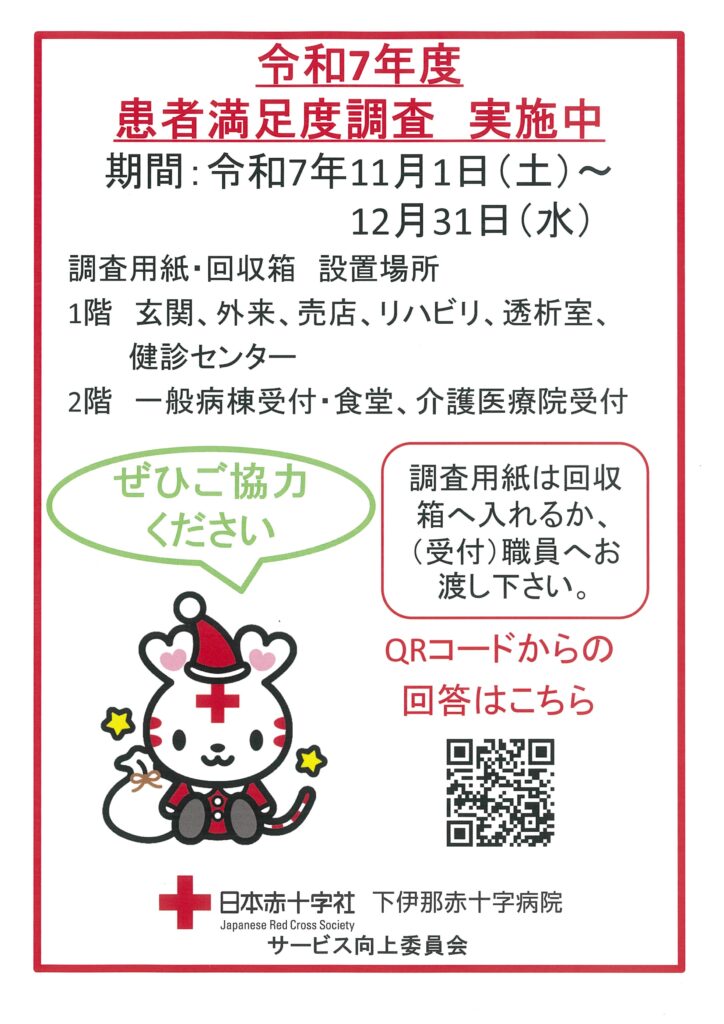 下記よりご回答いただけますので、ぜひご協力ください。院内には調査用紙もご用意しております。