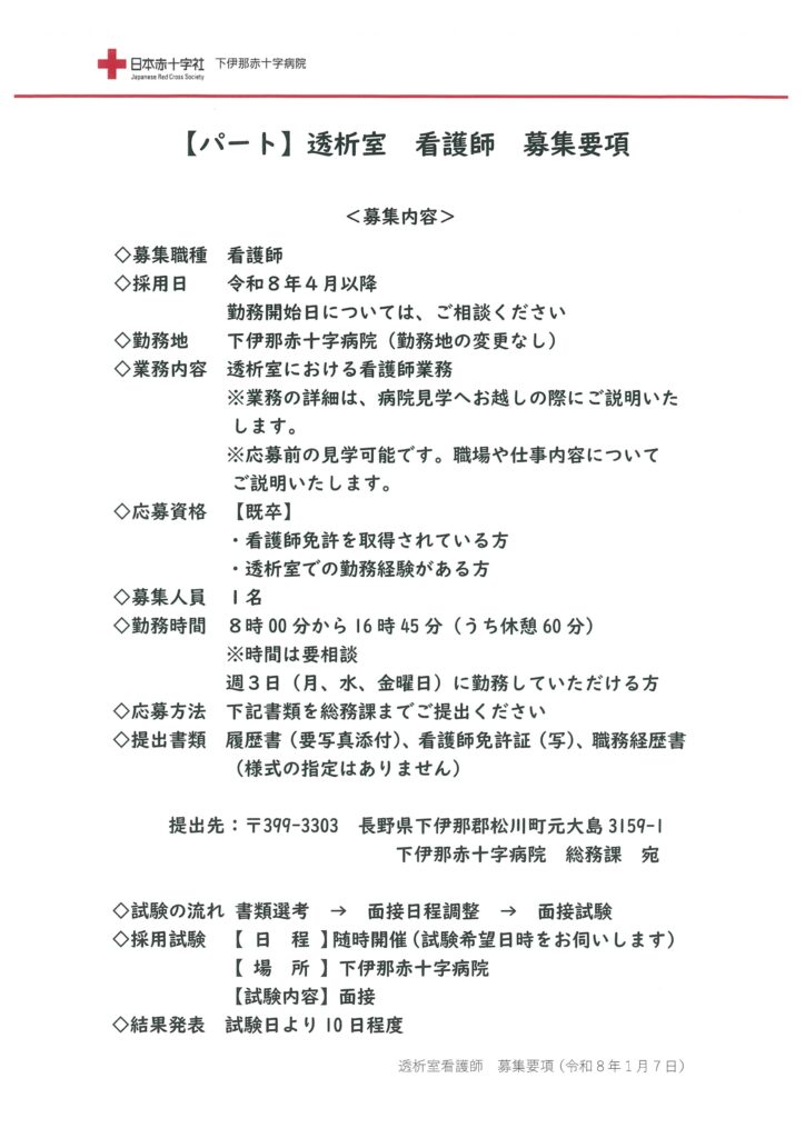 ・現在、外来、及び透析室で働いていただける看護師を募集しています。